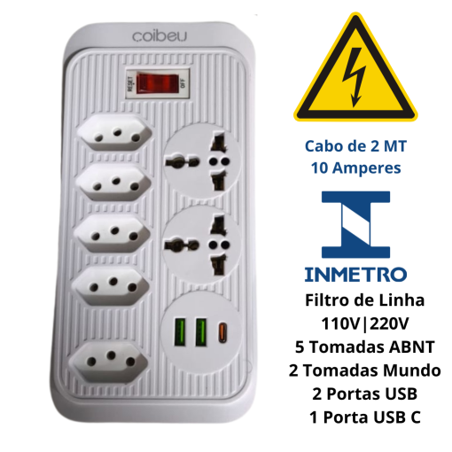 Projetado para atender às necessidades modernas, este filtro de linha oferece sete tomadas elétricas que acomodam facilmente plugues de diversos tamanhos e formatos, permitindo a conexão de computadores, impressoras, televisores, sistemas de som, entre outros, com facilidade. As portas USB são um diferencial importante, com duas entradas do padrão Tipo A para dispositivos mais comuns e uma entrada do padrão Tipo C, ideal para carregar rapidamente dispositivos mais novos e compatíveis com essa tecnologia.
