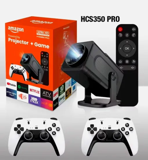 Apresentamos o Projetor HCS350 Pro + Console de Jogos Retrô com 2 Controles Sem Fio, a solução definitiva para transformar seu entretenimento em casa. Este dispositivo combina um projetor de alta qualidade com um console de jogos retrô, proporcionando diversão ilimitada para todas as idades.
