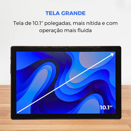 - Ampla Tela de 10.1″: Ideal para assistir a vídeos, trabalhar ou jogar, com boa qualidade de cores e ângulos de visão.