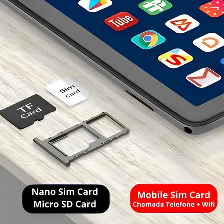 - Conectividade 4G: Permite uso de chip SIM para navegação móvel, facilitando o uso em locais sem Wi-Fi.