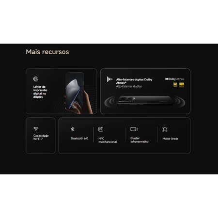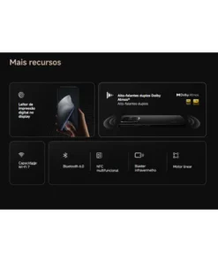 Alto-falantes duplosConjunto de 3 microfonesDolby Atmos®, alta resolução e alta resolução sem fioSuporta formatos de áudio: MP3, FLAC, AAC, OGG, WAV, AMRSuporta formatos de vídeo: MP4, MKV, WEBM, 3GPSuporta exibição HDR ao reproduzir conteúdo de vídeo HDR10, HDR10+, Dolby Vision®